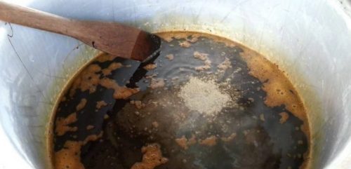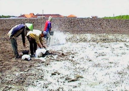 Bersamaan pada saat melakukan proses pembajakan, terdapat lumpur hitam yang berada dibawah tanah lalu angkat lapisan lumpur hitam tersebut. Lumpur hitam tersebut biasanya berbau busuk karena menyimpan gas-gas beracun seperti hidrogen sulfida dan amonia. Gas-gas yang berbau busuk tersebut terbentuk karena sisa pakan yang tidak dimakan ikan.